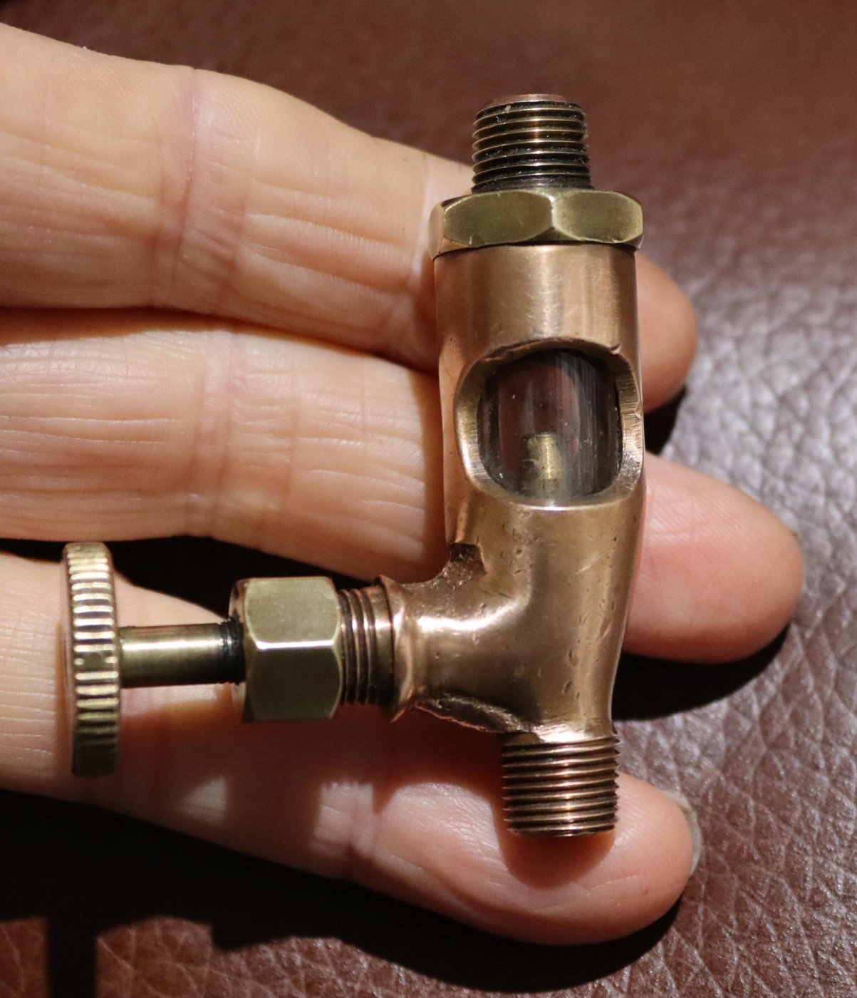 SPOKEN FOR! - BRASS IN-LINE DRIP OILER SIGHT GAUGE
