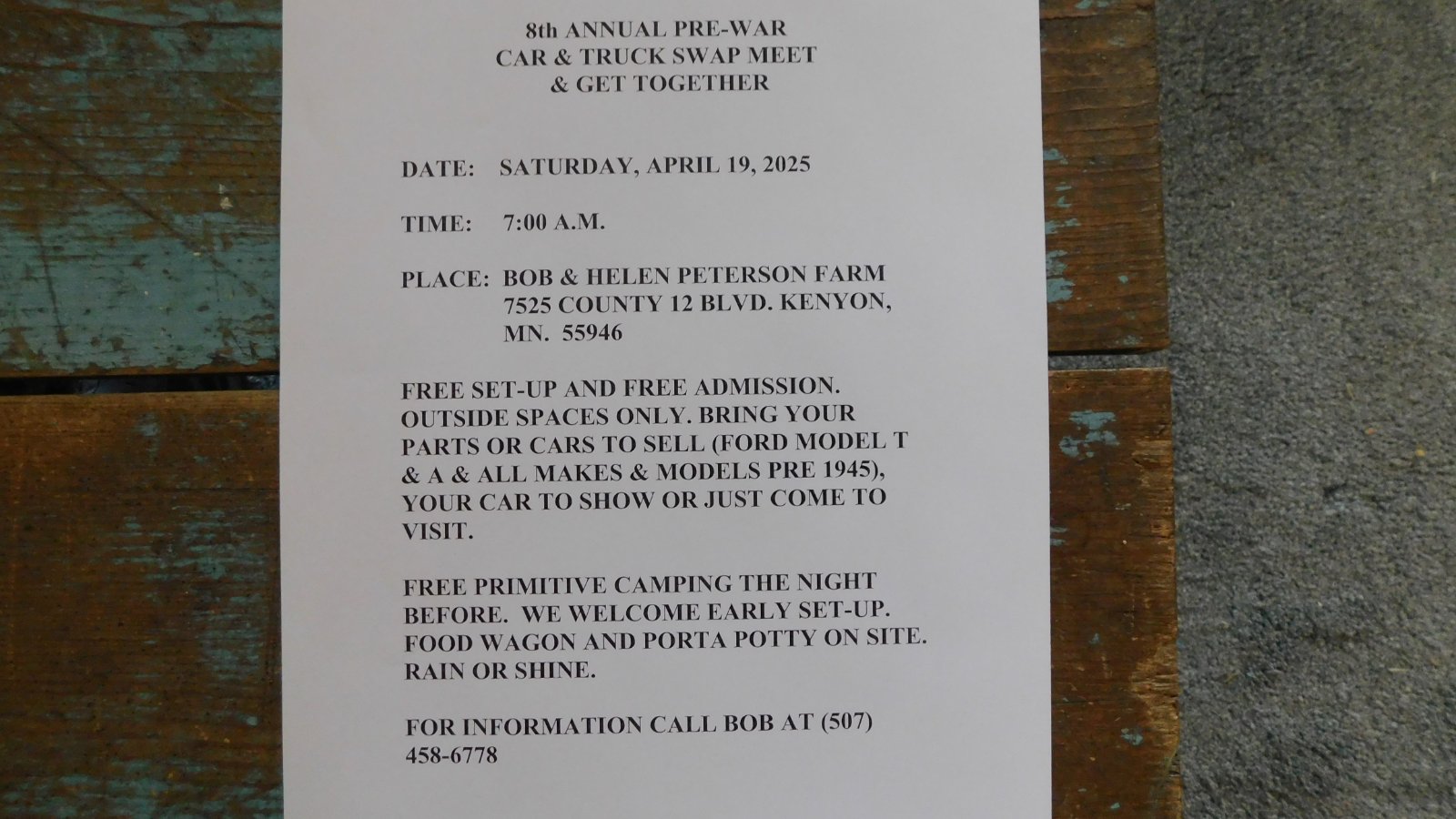Our 8th annual Model T-A-V/8 era Prewar Swapmeet. 50 miles South of St. Paul, Mn.