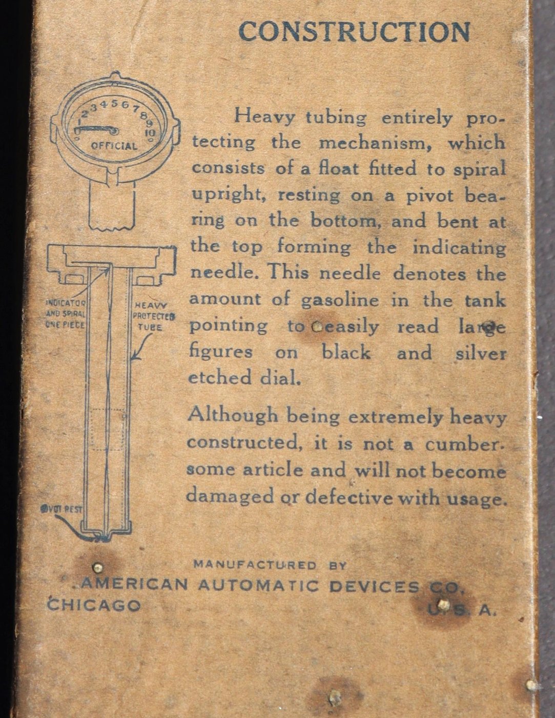 Re: FOR SALE - OFFICIAL IN THE TANK GAS GAUGE FOR MODEL T'S WITH ROUND GAS TANKS NEW OLD STOCK IN THE ORIGINAL BOX!