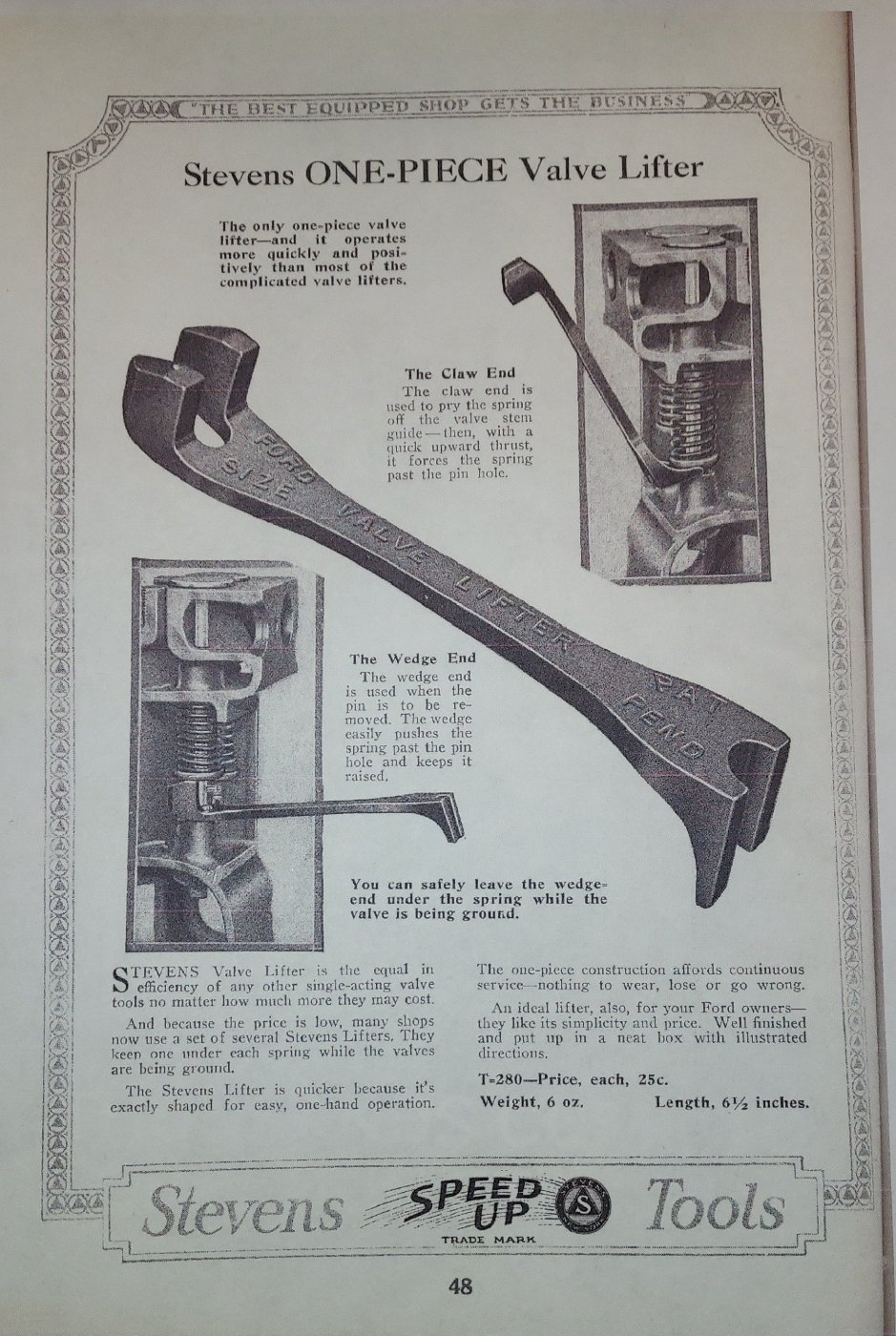 For Sale: Stevens NY T-280 One-Piece Valve Lifter. This is the best valve spring compressor tool I have ever used on a Model T. $65.00 plus $5 flat rate USPS shipping in the continental USA. I will accept a personal check or postal money order. First one to PM me gets it.