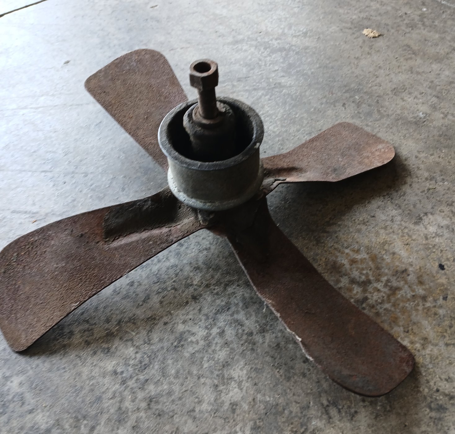Selling more stuff for my friend! Ain't gonna lie, this poor old fan has seen better days! Later style with the oil filler screw. Someone I bet can resurrect this old beast! The hub is good..very little shaft play "as is" but a great rebuild candidate. Lets get her back out there for $15 plus the ride...that'll probly be around the same amount