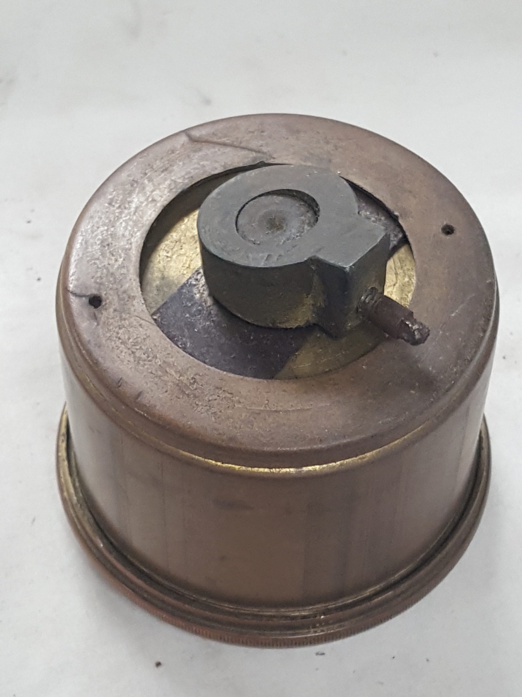 All brass clock runs when shaken, no cracks or dents. No dents or cracks,