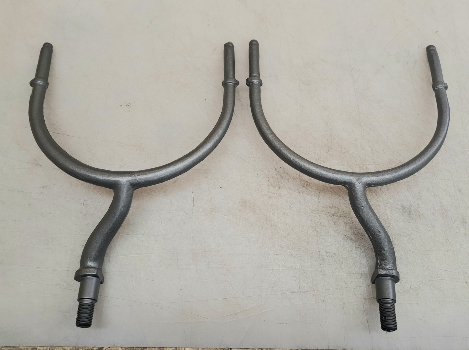 One set of brass reproduction early headlamp forks in used condition. Price is $75.00 plus $16.50 domestic shipping. Mark Chaffin (951) 805-0928