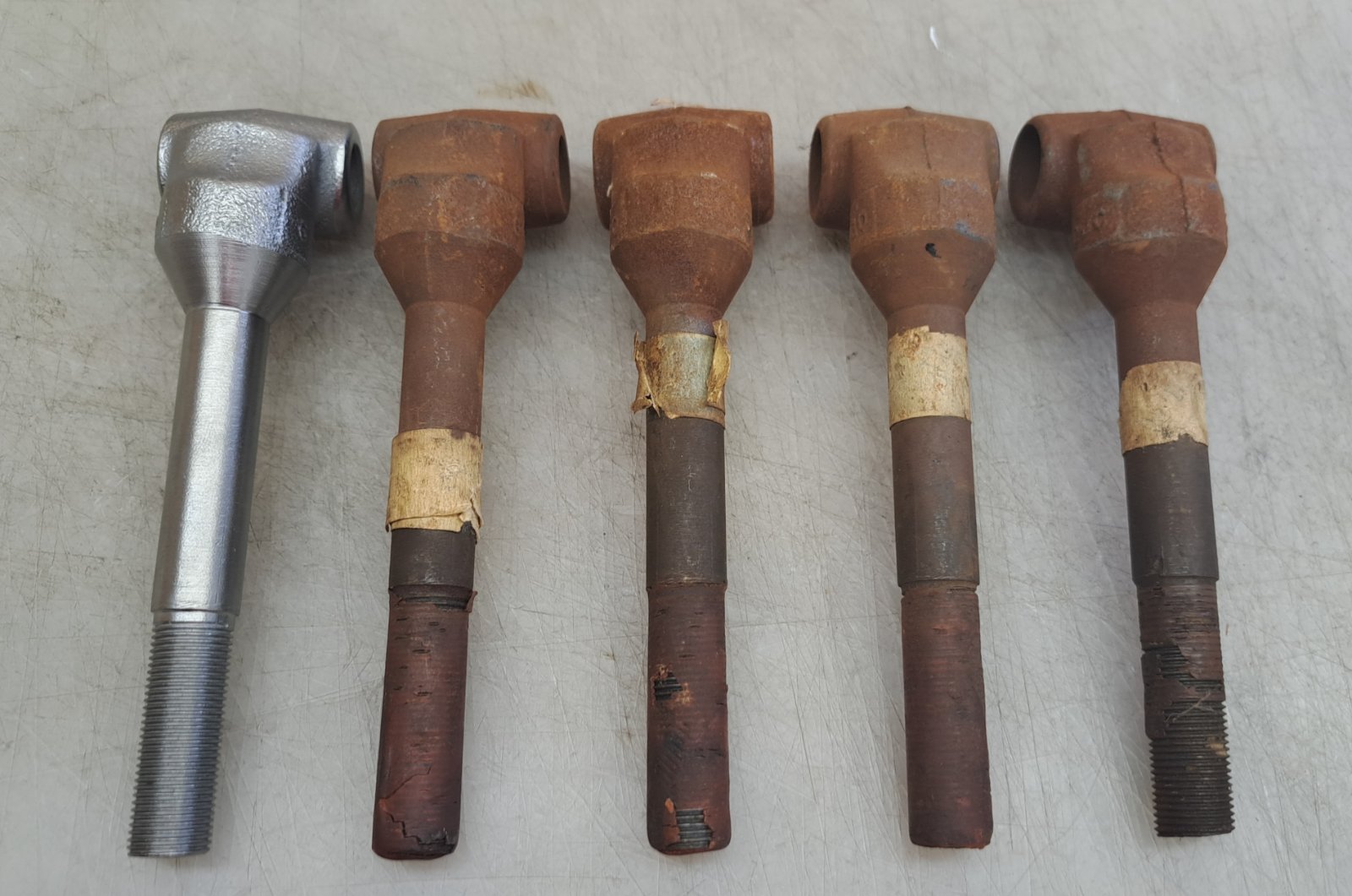 Hotrod front spring perches. The consensus is these are used to put a Model A front axle under a T front spring and frame. They appear to be forgings and NOS as the threads are covered in wax. Extra to my needs. Get the entire lot for $100.00 plus $8.50 domestic shipping. Mark Chaffin (951) 805-0928