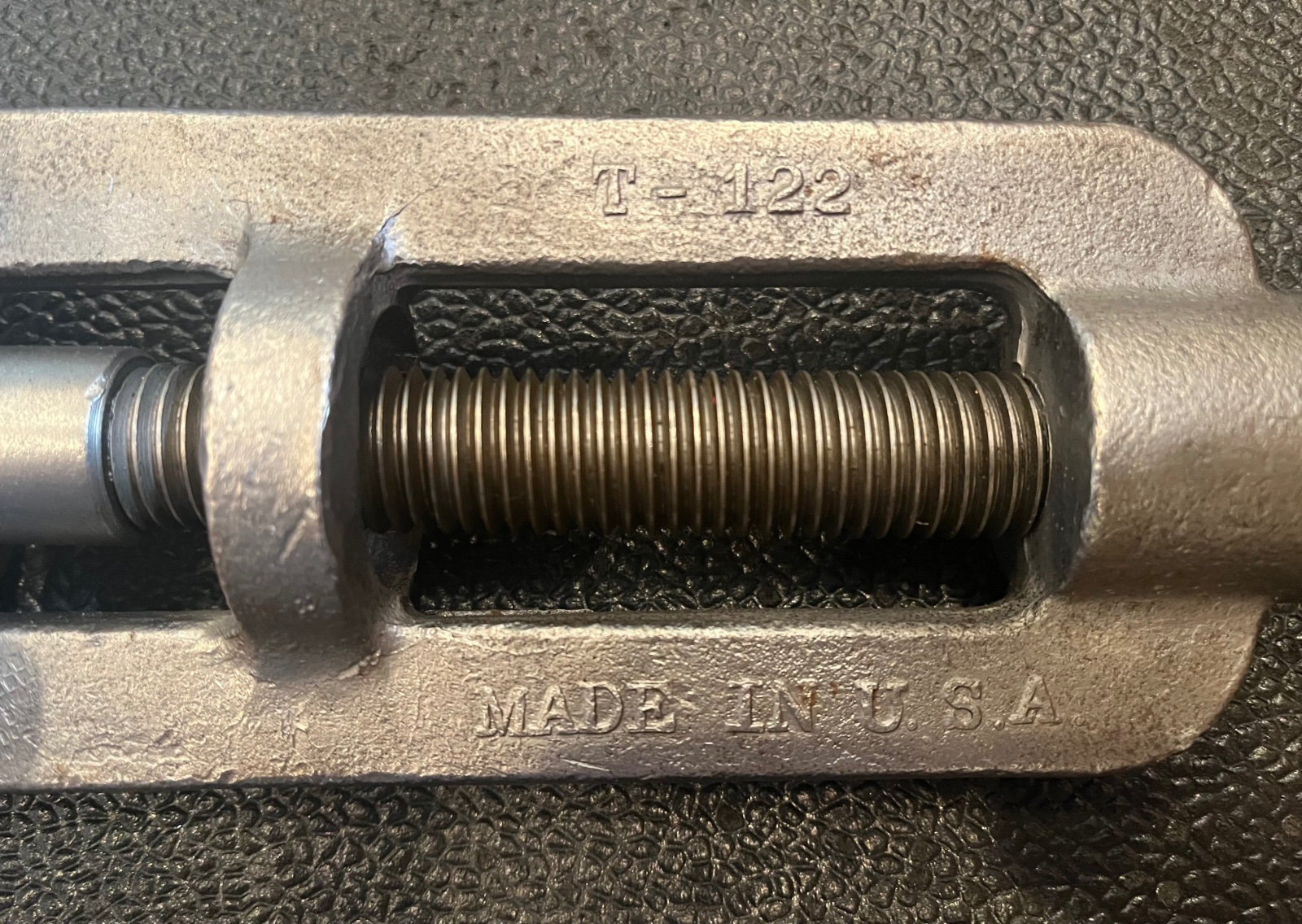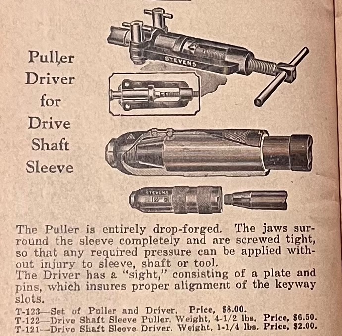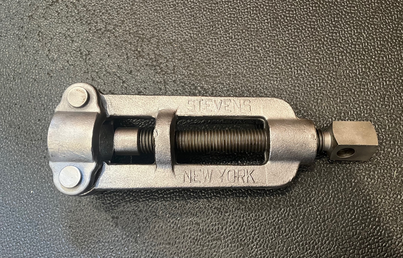 SOLD!Stevens T-122 Driveshaft Sleeve puller. This puller is used to remove the stubborn driveshaft sleeve for the pinion bearing. Threads are in excellent shape. These don’t come up for sale very often. Stevens made some of the best quality tools for the Model T.