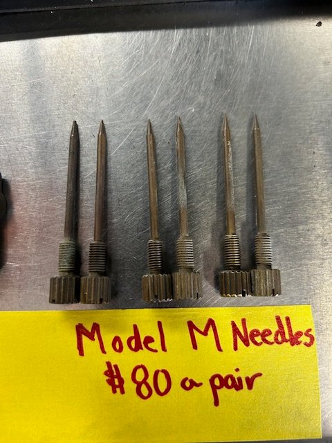 NOS Winfield model V H M N PARTS. They have shelf wear from being in a cabinet for years. Mostly 33 series throttle levers and Model M intermediate and high speed needles. Prices are in the picture. i can email you more pictures if you would like. If your are looking for a particular part for your Winfield model V H M or N just send me a message. I may have it.
