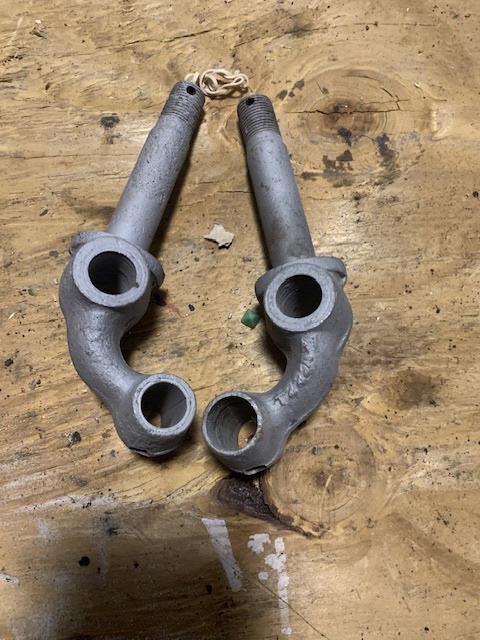 Here is a pair of Early Above Axle Wishbone perches. These have the oil hole in top, but that could be filled. Have been blasted.