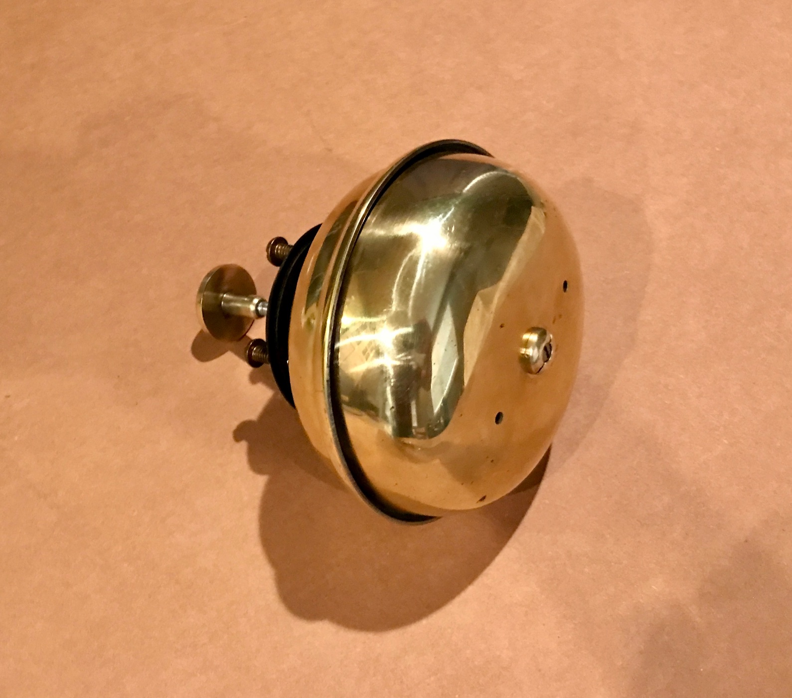 ORIGINAL. T era Bevin Bermuda Foot Bell. Not a cheap reproduction. Holds the tone, very loud. Excellent condition, polished brass. No dents or serious damage, some minor nicks from road use. Very loud “Ding Dong” when brass plunger depressed. 5.5 diameter, polished brass, ready to install and use. A must have item for your T. 285 includes shipping.