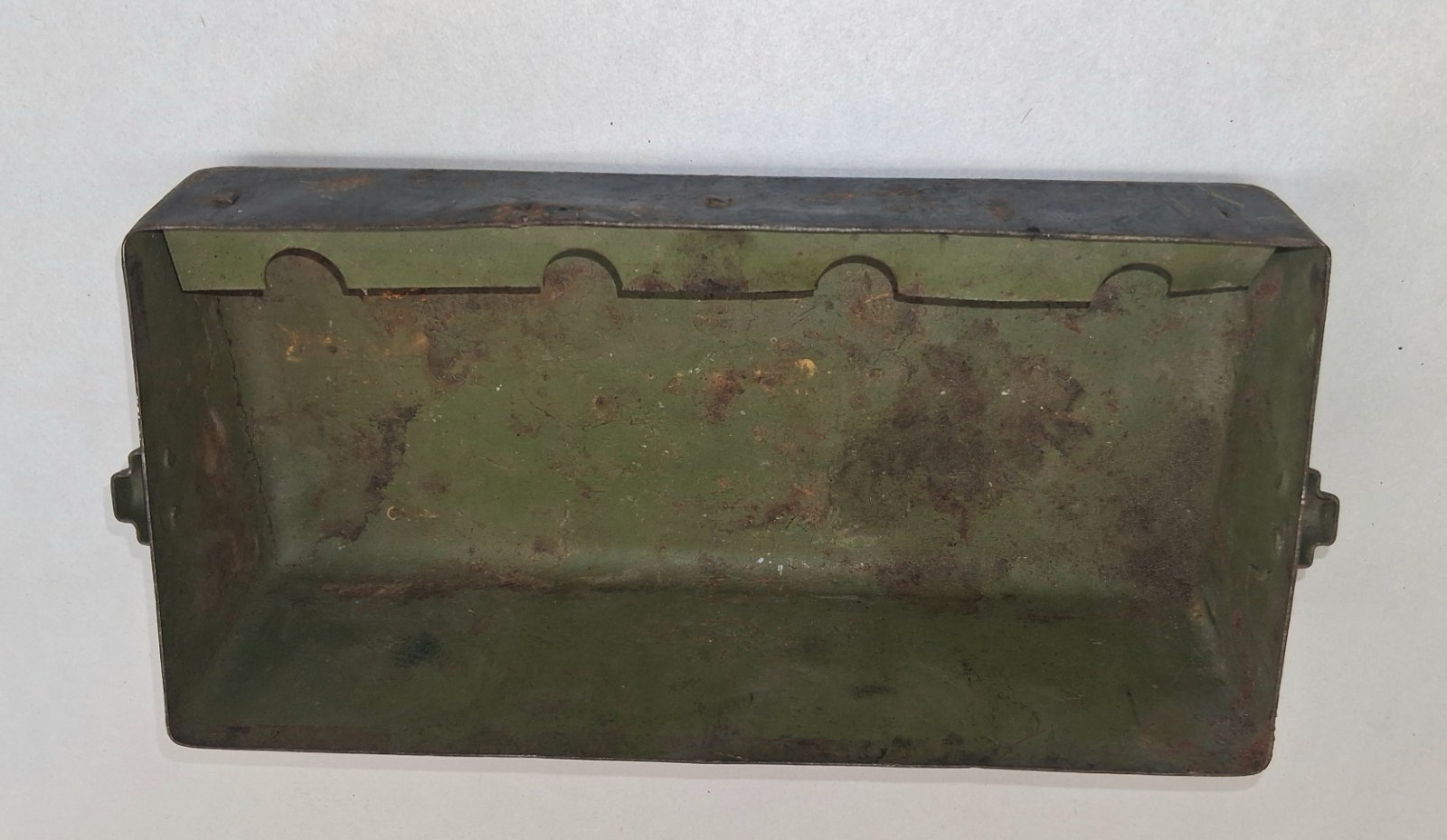 Early steel coil box lid (Early 15) without reinforcement rib and with rounded corners. Price is $45 plus $8.50 domestic shipping. Mark Chaffin (951)805-0928