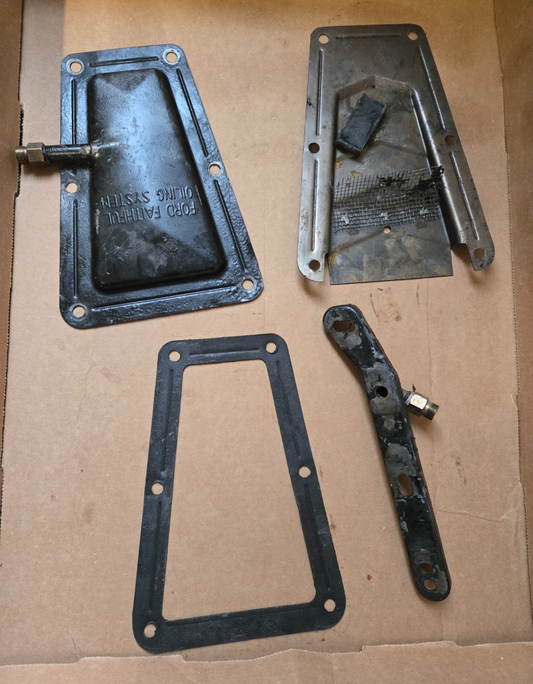 I bought this Ford Faithful from Chaffins when they started reproducing them. When my motor was rebuilt I went with a high flow oiler. This little unit worked great until then though! You will need to supply a new copper line. I also drilled a very small hole through the screen plate....otherwise it held oil and made a mess during oil changes.