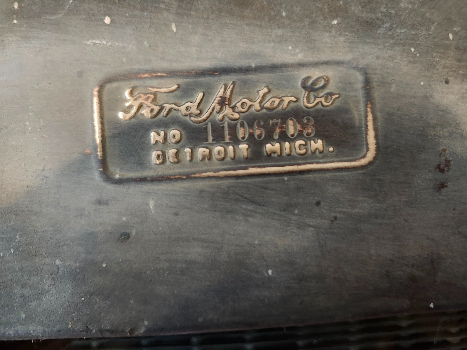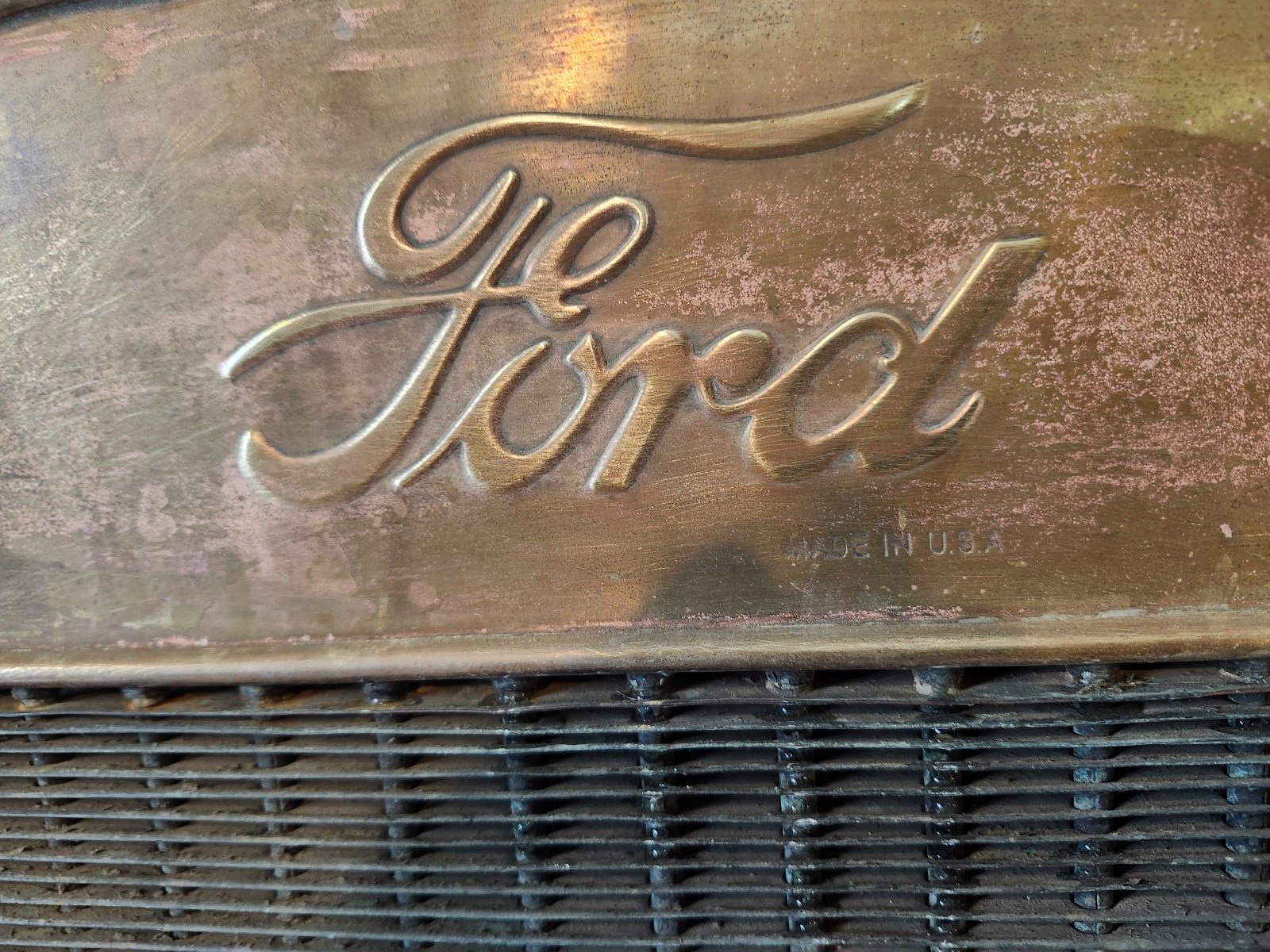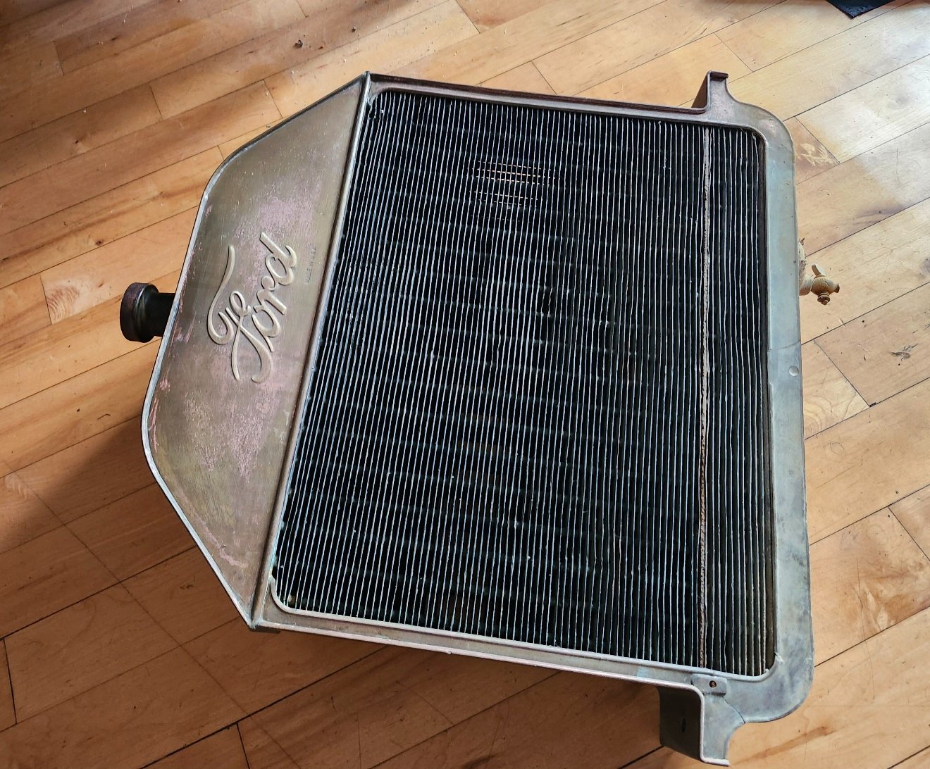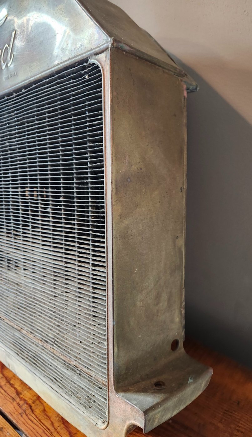 This is a really nice original radiator. Barn find. Actually from a garage full of neat stuff. It has the wire tube on the rear of the core. The stamp on the rear is #1106703. The tank below the neck area is slightly pushed in but it could be easily pushed out. The fins are good throughout. The neck is good. Both the water inlet and outlet are good. The mounting ears are good. The Ford script and the Made in USA is crisp. Haven't seen a good one like this for a long time. Perfect for a good original car. Take a look at the photos. Let me know if you need more photos. Price is 700.00. Rather not ship it, but we can talk. Call me at 734-730-4274 or email directly at motoringicons@hotmail.com I do not answer messages posted here. Thank you and Happy Motoring!
