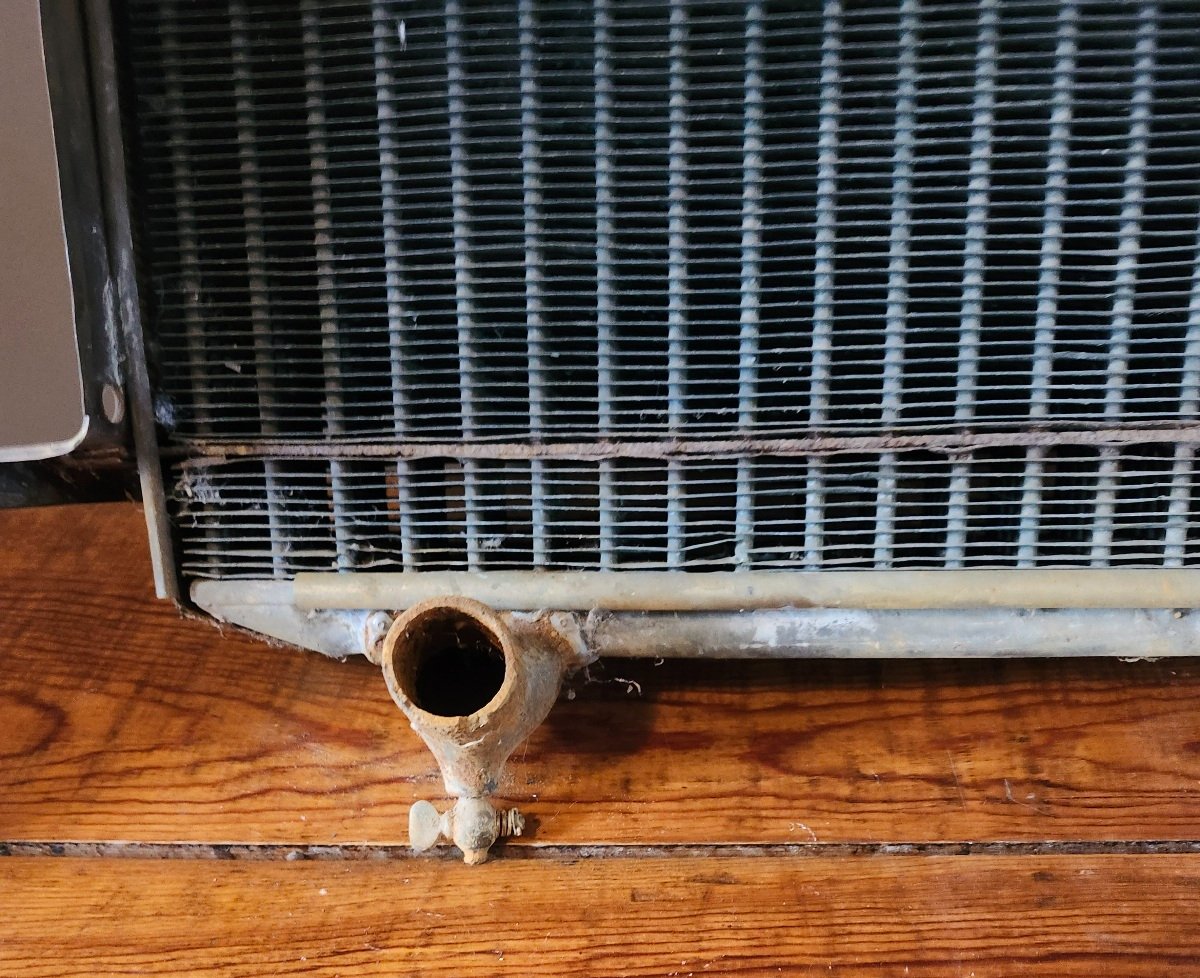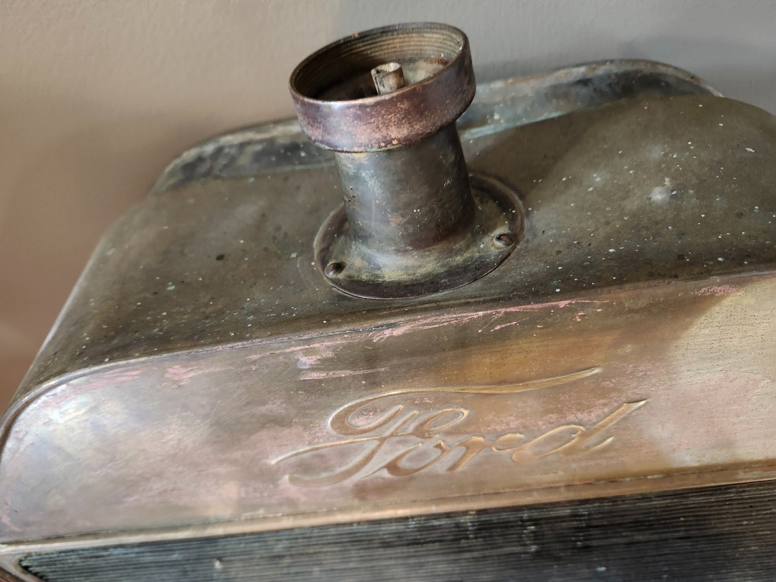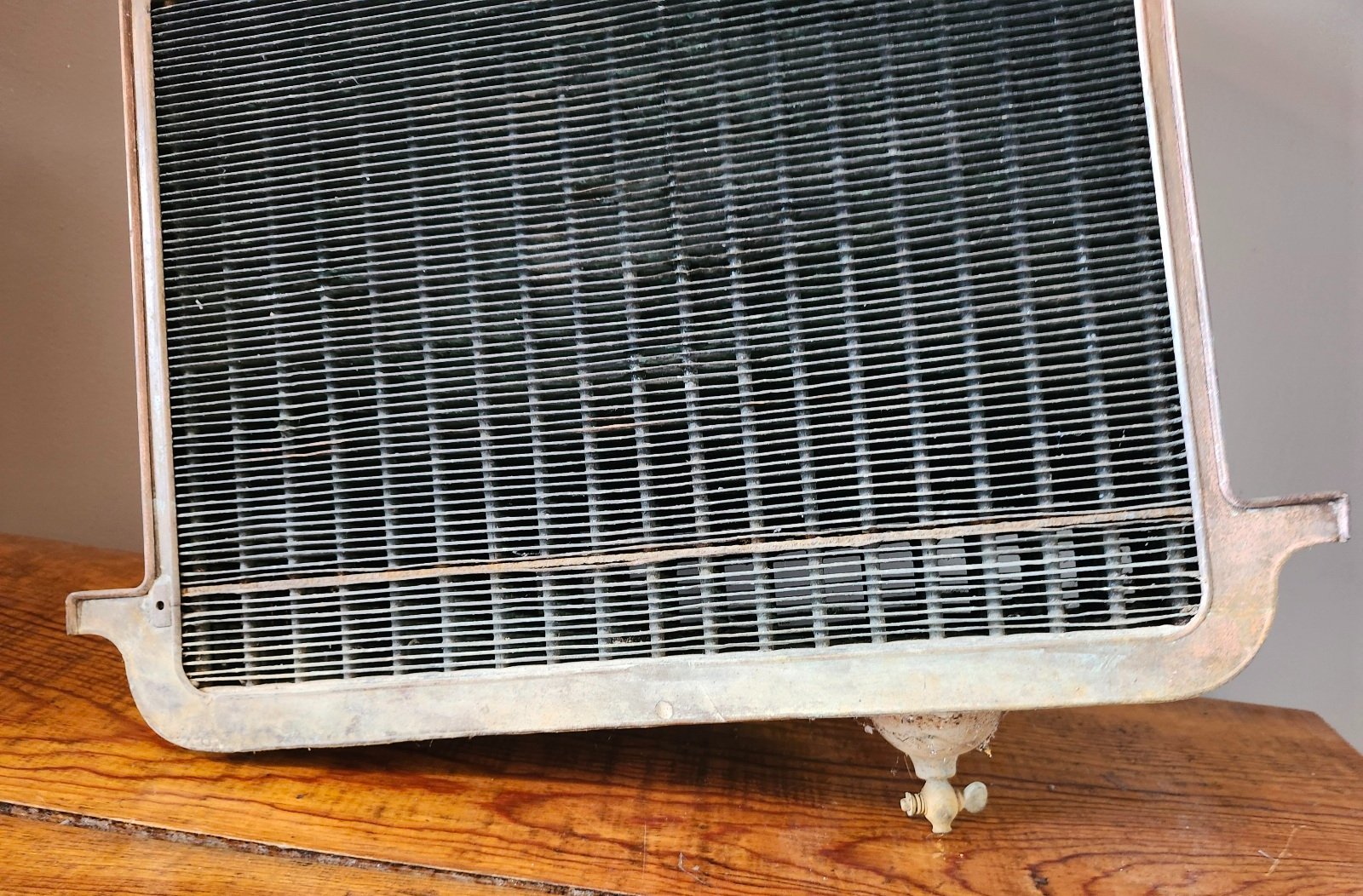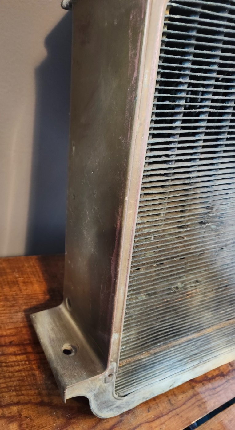 This is a really nice original radiator. Barn find. Actually from a garage full of neat stuff. It has the wire tube on the rear of the core. The stamp on the rear is #1106703. The tank below the neck area is slightly pushed in but it could be easily pushed out. The fins are good throughout. The neck is good. Both the water inlet and outlet are good. The mounting ears are good. The Ford script and the Made in USA is crisp. Haven't seen a good one like this for a long time. Perfect for a good original car. Take a look at the photos. Let me know if you need more photos. Price is 700.00. Rather not ship it, but we can talk. Call me at 734-730-4274 or email directly at motoringicons@hotmail.com I do not answer messages posted here. Thank you and Happy Motoring!
