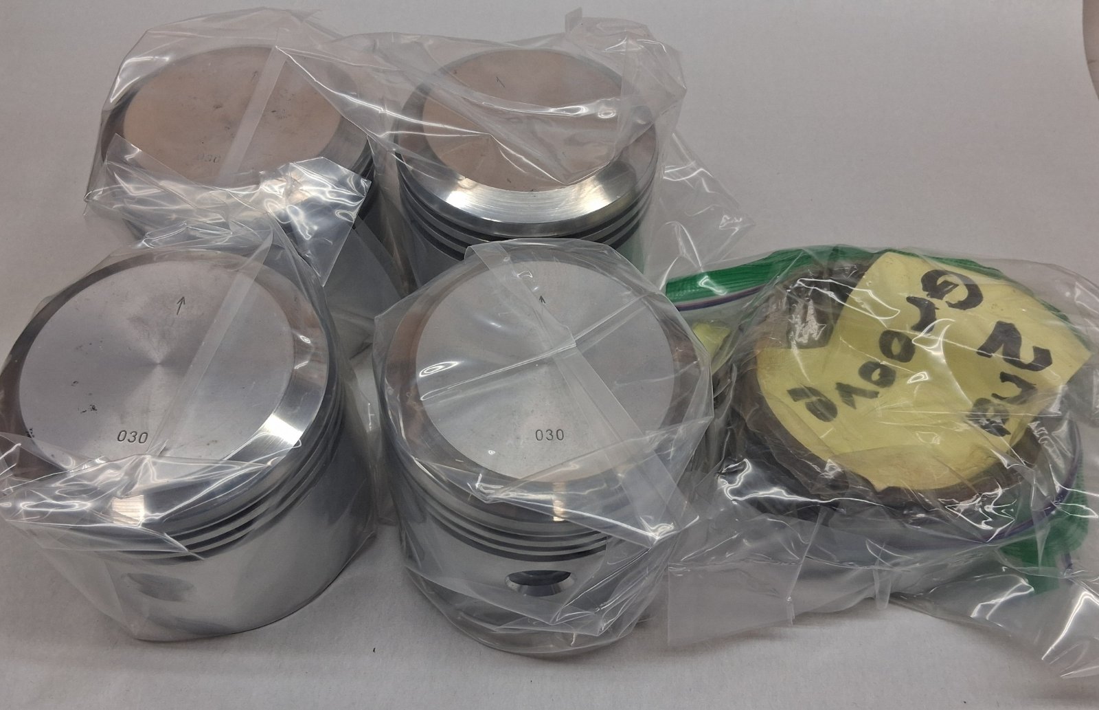One set of standard aluminum pistons .030 oversize with pins and rings. Price is $150.00 plus $18.50 domestic shipping. Mark Chaffin (951) 805-0928