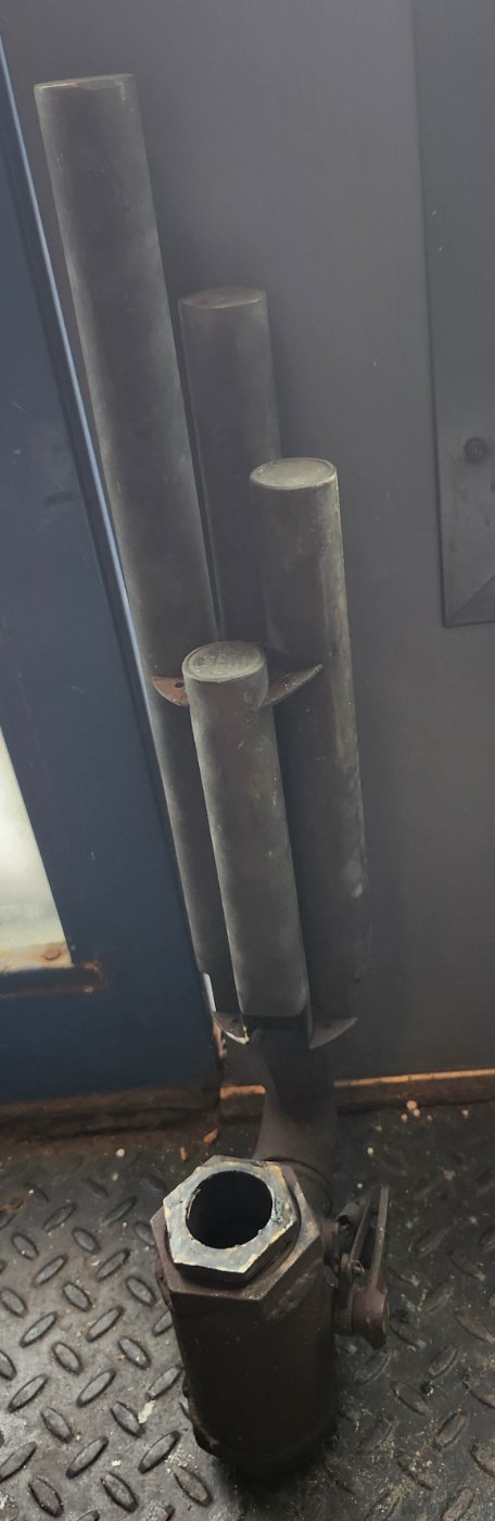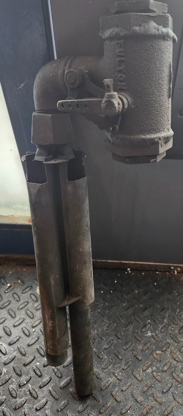 A four tube Aermore No.0 whistle with a Fulton cutout. The cutout has the double butterfly valve. The cutout body has been welded to make the opening smaller. This can be removed or left as-in. Currently the cutout has approximately 1 1/2" threaded into a 2 1/4" threaded in inlet. Approximately 2 3/4 overall ID original size. Needs a good soaking to loosen. Approximately overall length is 22". The whistle is in very nice original condition with nickel plating over brass. Price is 325.00 including shipping with FedEx Ground within the USA.(It's heavy!) Call me at 734-730-4274 or email directly at motoringicons@hotmail.com I do not respond to messages left here. Thanks. Have a good day!