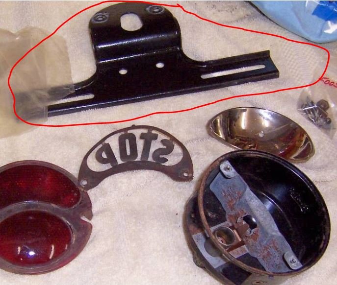 So I fab'd one using the repop Synders 28-29 drum license bracket, cut the sides away, and drilled hole and cut straight sides to make that 'oblong' hole for the lamp socket and to clear the rear lamp bump. The sides of the 28-29 Model A bracket are narrow, but just enough 'meat' to drill holes for the nuts to secure the lamp's studs. Works, looks 'almost' authentic![]()