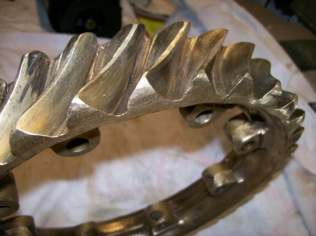 I have for sale a MODEL TT TRUCK REAR END 5:1 high speed ring gear. If you have the standard rear end or Ruckstell 2 speed rear end, this will fit it WITH THE HIGH SPEED WORM GEAR. A good spare to have, but not the best SEE THE PICTURES OF THE TEETH. I am thinning my stock and this gear is ready to go in and I would use it in my own TT truck. It has been cleaned up and the gear has had the burs and chips on the gear edges removed. Take a close look at the last pictures, because some of the teeth have some marks in them. I am showing the worse looking teeth. This gear has a better direction to run on so make sure you place it in the best running position. Price is $115 and that includes shipping (free shipping to the lower 48 states). PM, email, or leave a message, first come first served.
