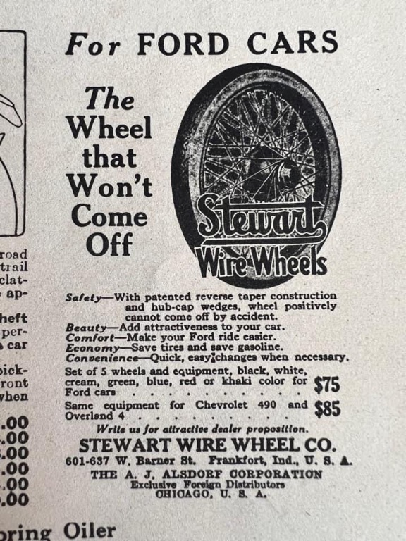 Nice lookin wheels! I haven’t seen a Stewart wheel before… and don’t recall seeing any original ads either. Might you be willing to start a general discussion thread about the wheels? Would be nice to document how the drive mechanism and hub nut locks work…