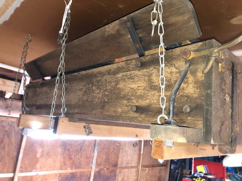 To make sense of the pictures: the truck bed is sitting on 2x4s that are hanging from the garage ceiling. It is too heavy for me to get down by myself, so anyone who wants it has to help me get it down.