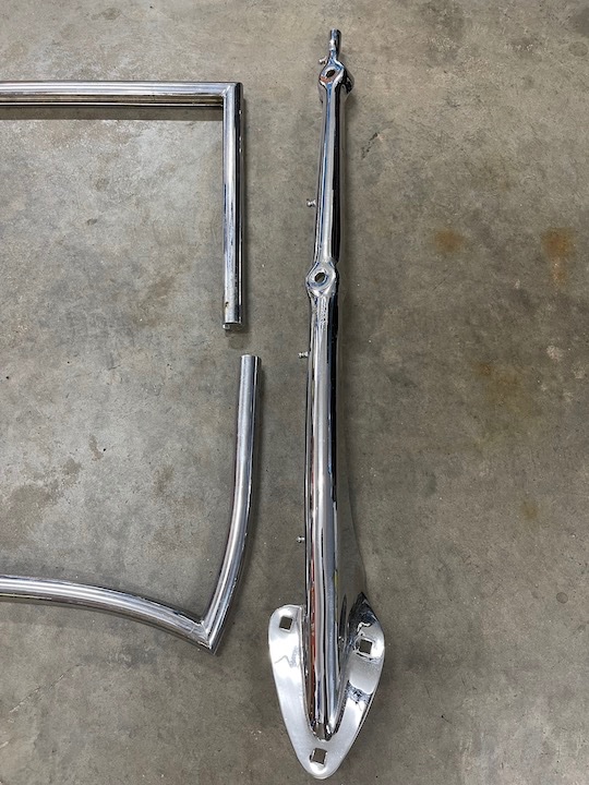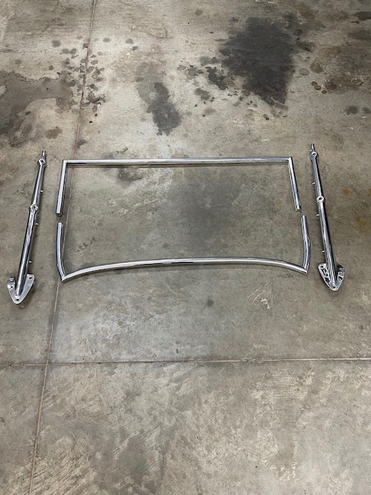 My Touring car came with a Chrome windshield Top and bottom as well as chrome stanchions. I went with the original look. These were sold for a speedster or a hotrod. There is no channel on the bottom for the rubber. All look presentable. The stanchions are very nice and the windshield frame could use a polishing. 350.00 for everything you see plus the ride. First one to post to this thread wins the prize.