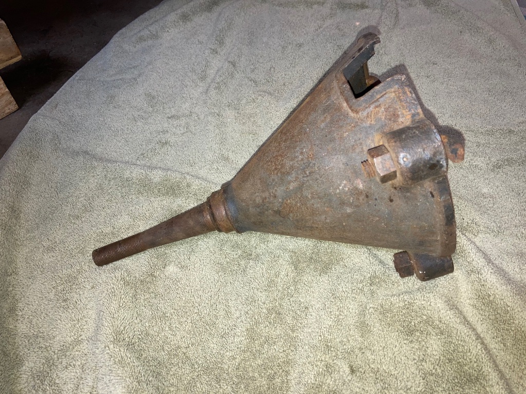 For use on small drum axles. This could be used for a broken axle or towing. It will fit over an axle that is not broken. A front wheel is used on the axle stub. The threads are in good shape. This is a nice solid rare piece.
