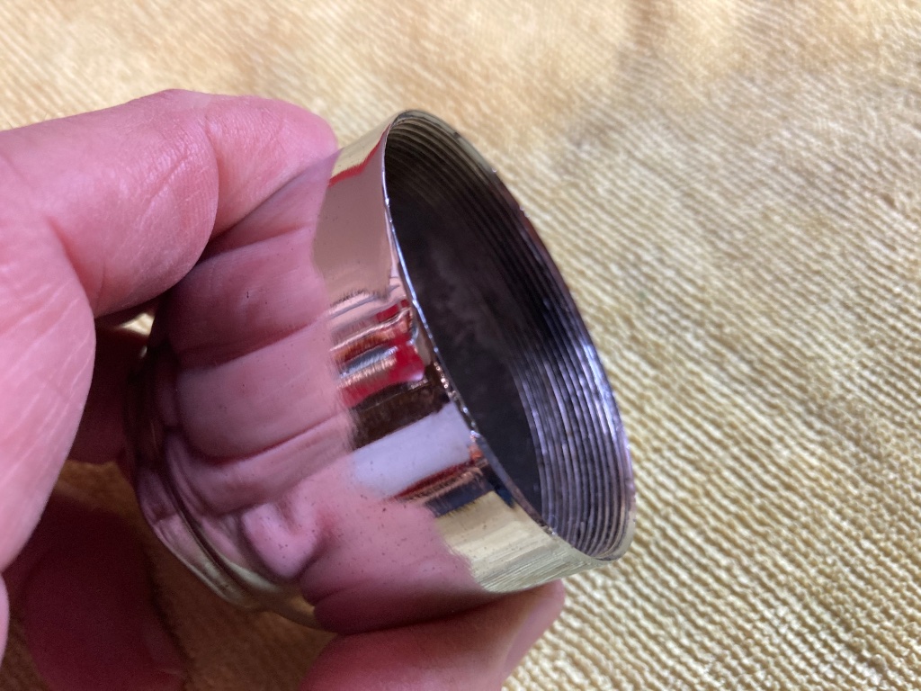 Two chrome plated hub caps. Threads are nice.