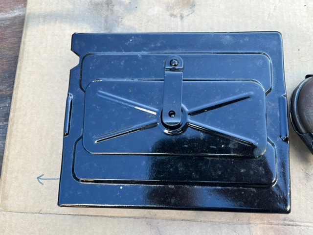 Nice Buttler brass water pump, stainless steel shaft. $200. Original Battery box cover with door, very nice, $125. Tool for lifting transmission on and off engine, well made and very useful, $85. Ford oil can with original spring loaded mount, $85.00. All plus shipping. kdmks AT att.net.