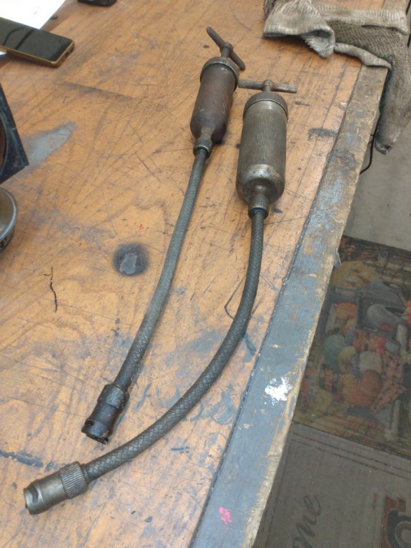 Alemite lubricator pat. 1919.the big one still pushes old grease. Has braided lines on them. Use them or hang em on the wall. 20.00 for the small one, 25.00 for the bigger, plus shipping. ctleonard64@gmail.com