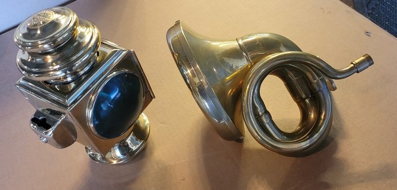 1909-1910 6 piece brass set, reproduction. Pair of headlights, pair of side lights, tail light, and horn. $2400, does not include shipping cost. Can be delivered to Chickasha meet for pick up on March 16th or 17th for free. Please contact Lang's Old Car Parts at 1-800-872-7871 and mention MTFCA forum.