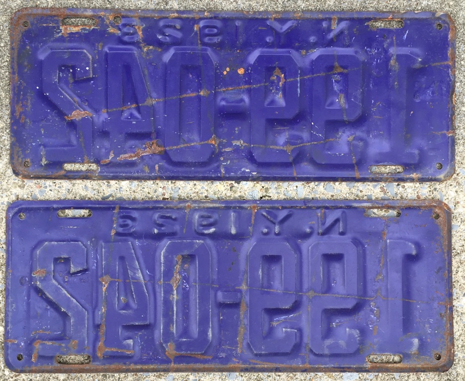 1923 NYS license plates. Matched pair of originals in excellent condition. Original paint. I haven’t tried cleaning these they are as found.