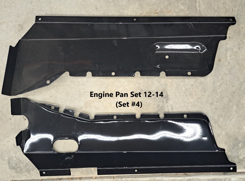 I have several engine splash pan sets available for purchase. Prices and description are as indicated below. Actual domestic shipping will be an additional charge. Mark Chaffin (951) 805-0928