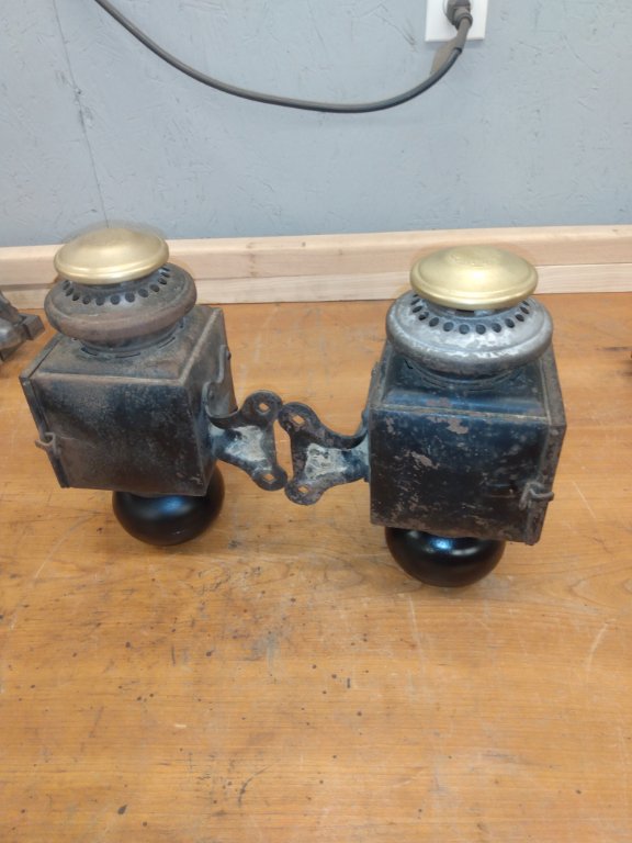 A rather nice set of lights. Excellent chimneys, fonts has one small dent bottom of one. All glass is good. Burners and wheels intact. 340.00 for the pair plus shipping. ctleonard64@gmail.com