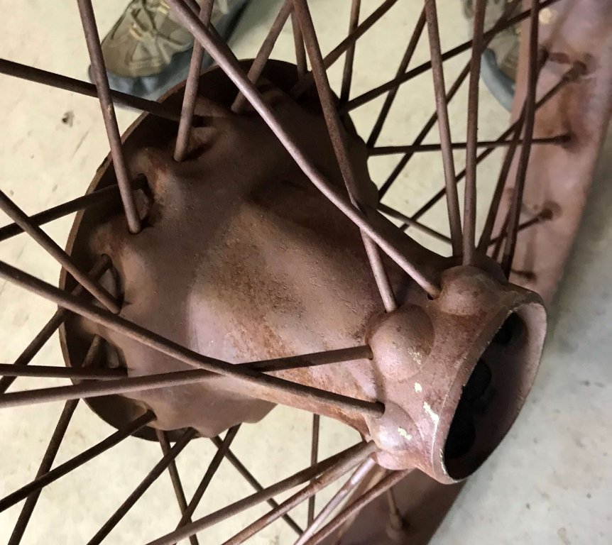 One Budd wire wheel for Sale- Center is in great shape- rim is pretty beat up. $100.00 plus shipping UPS or USPS Flat Rate. Willing to ship complete wheel or just the center.