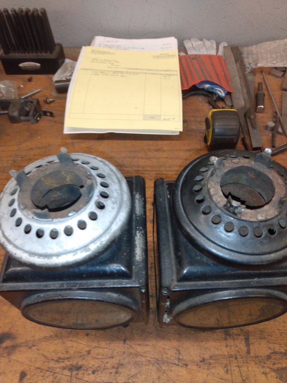 Let's not get real excited. Tops are dented.one font has been filled with something. One square glass is cracked.one door hinge is broken. both have good reflectors. I'd like to ask 100.00 for the pair, plus shipping. Will take a reasonable offer though. Both have burners ctleonard64@gmail.com
