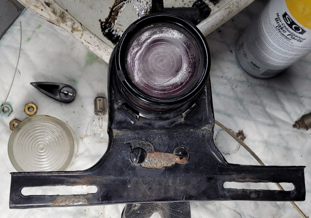 Wanted: '26/'27 taillight / tag bracket (do not need fender mounting bracket). Also, Victoria accessory stop/tail light (complete) which snaps in in place of standard taillight. See pictures.