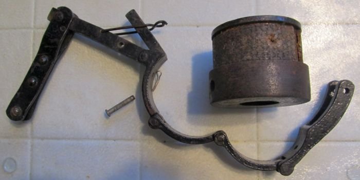 This is the main appliance for this pull from the dash hand start device. Spring tension keeps the return up and a brake fiction band on the pulley does the grabbing when you pull from the dash.Someone handy should be able to fabricate the missing pieces using the original instruction sheet schematic. Asking $85 plus postage. As a note the Instruction sheet you see here is digital only. SORRY BILL the unit sold to the first person that emailed to the address I listed below, as I instructed, and NOT the Forum personal messaging system that I do not follow.