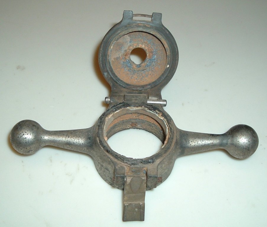 Hinge top dog bone cap. Internal threads, one top cap hinge ear broken (see photo) $75 includes US shipping.