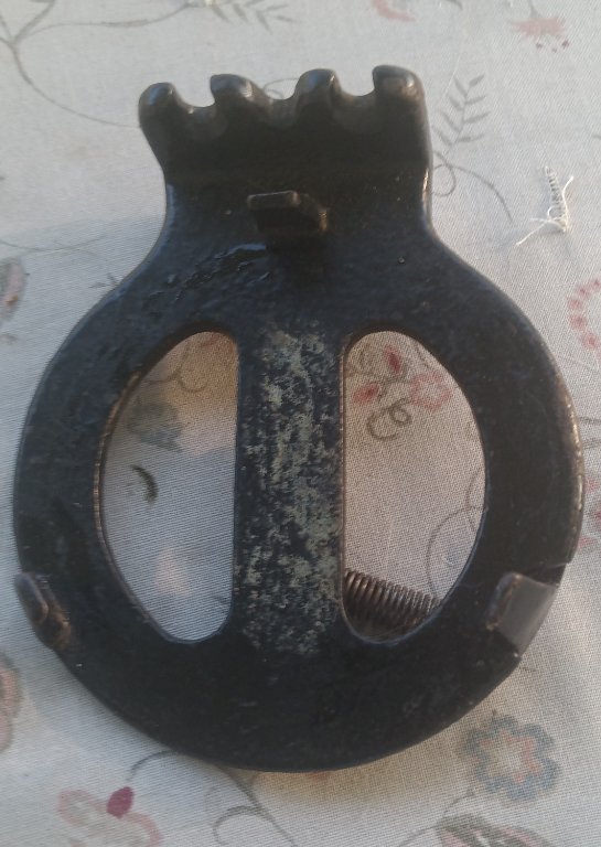 Unusual oil can holder I have never seen this style before . Cast iron and spring loaded . Looks NOS . Oil can not included. $75.00 plus shipping .
