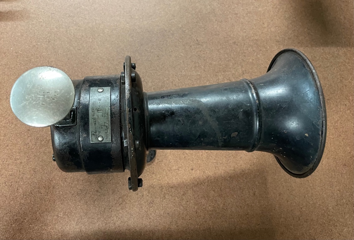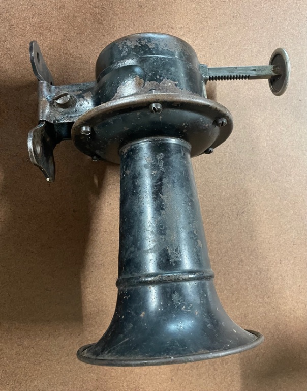 Mid to late teens Stewart Warner hand operated Horn, needs some adjustment for good sound, plunger does not return after pressed, you must pull it back up. It seems to have been built that way. Nice piece with a factory mounting bracket.