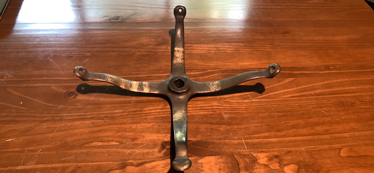 Here’s a 09-12 Model T Ford brass spider. It has the double key way. Not perfect. Needs polishing and has several places of deep scratches. $50 plus shipping
