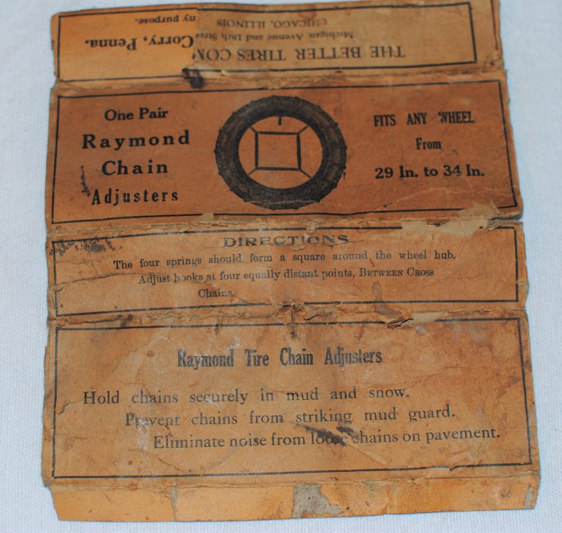 D. Three Raymond tire chain adjusters with original box (folded flat). Like New.