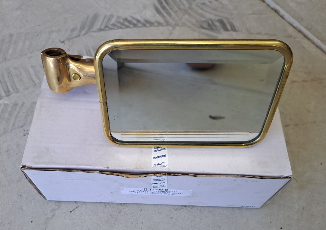 Nice large side view mirror for the early open car. These were made by Vintique and are no longer available. I have two available. Price is $175.00 each plus domestic shipping. SOLD