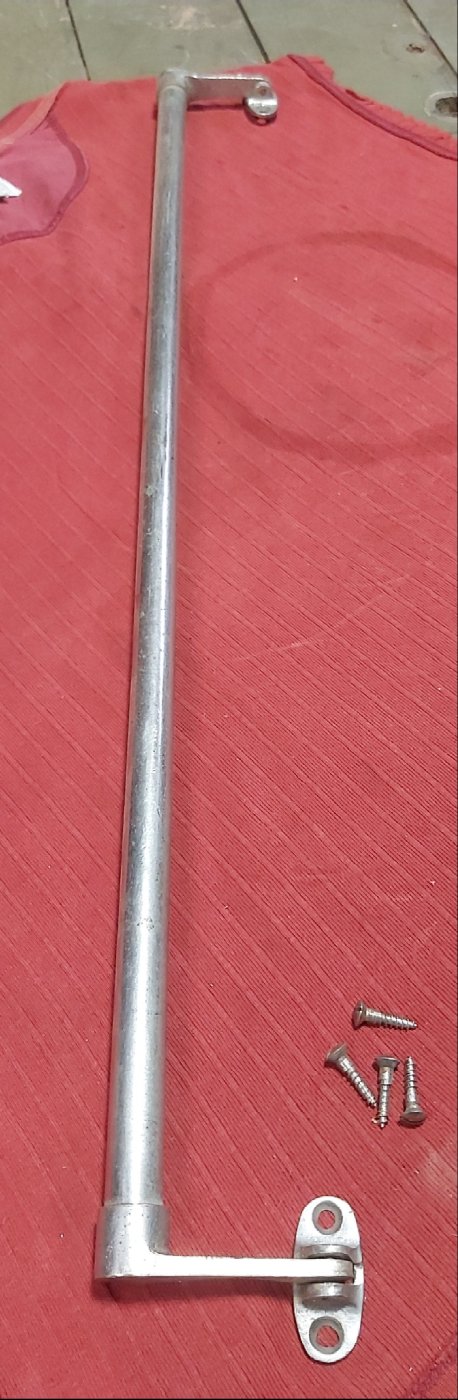 Solid brass. Use as is or strip and polished the brass. 28" wide, complete with mounting screws $85 including postage to your door.