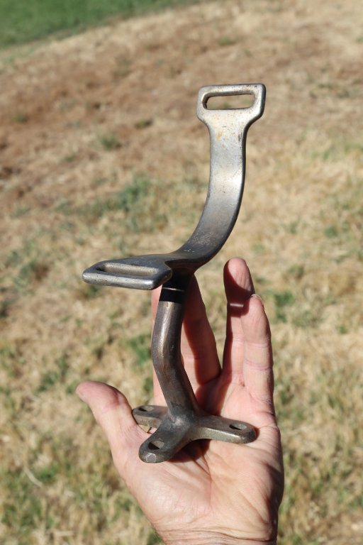 This is a nice period cast brass spare tire bracket to strap a spare tire to the running board in conjunction with a holder for the top of the tire. Asking $60 plus postage.