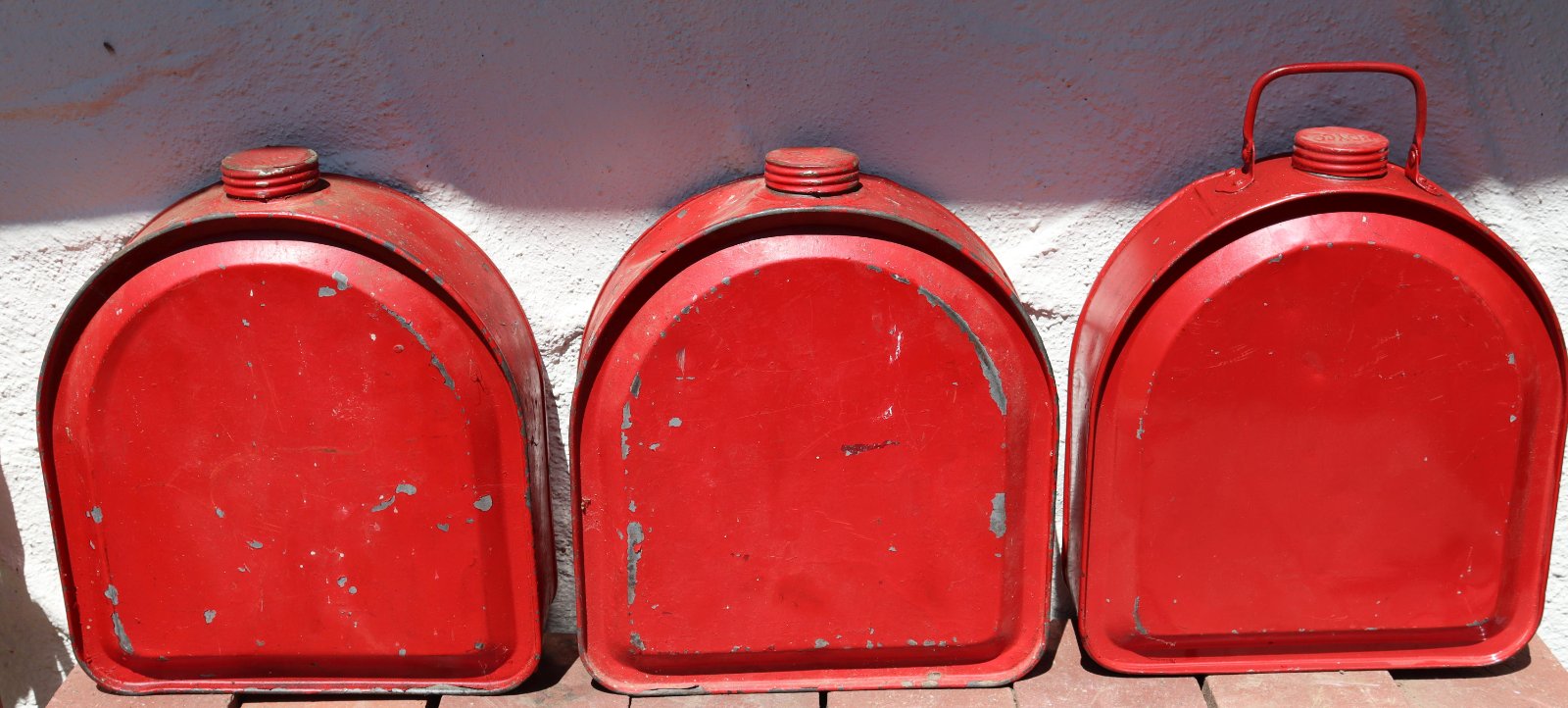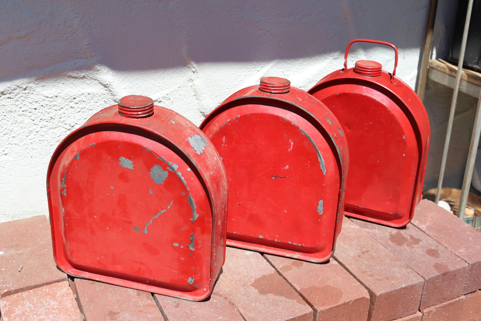 FOR SALE - SET OF THREE BOYCO RUNNING BOARD CANS WITH ORIGINAL BOYCO IMPRINTED LIDS