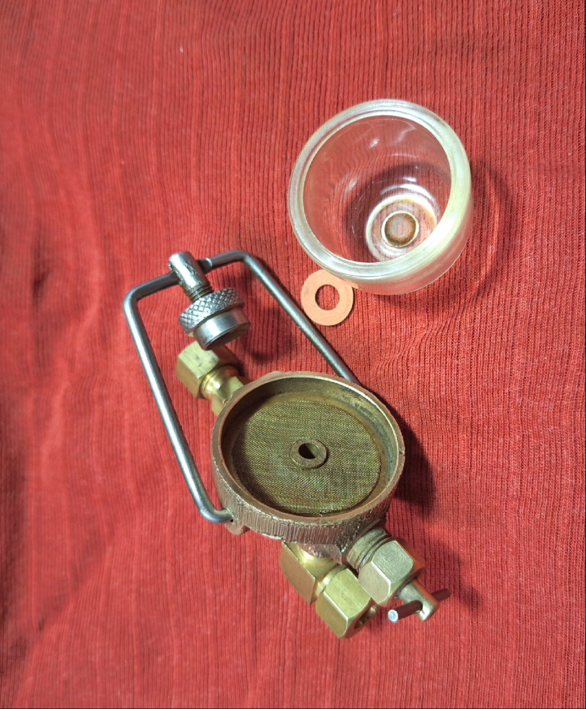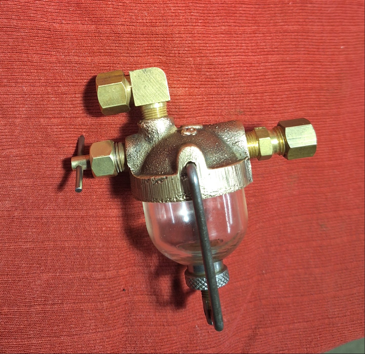 Combination shut-off valve, sediment seive and water trap. Solid brass, probably new old stock. $50 postage paid to your door.