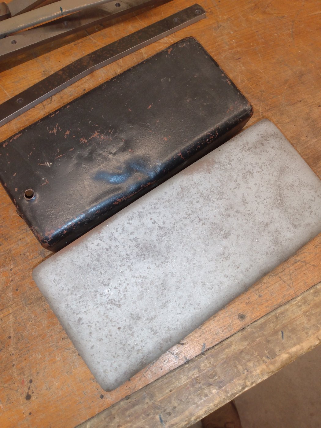 Got a pair of later 15 coil box lids. One is kind of beat up with a hole drilled in it, the other is straight but has pitting. Along the front lip you can see daylight, and is missing a latch. Get both for 25.00 plus shipping. ctleonard64@gmail.com