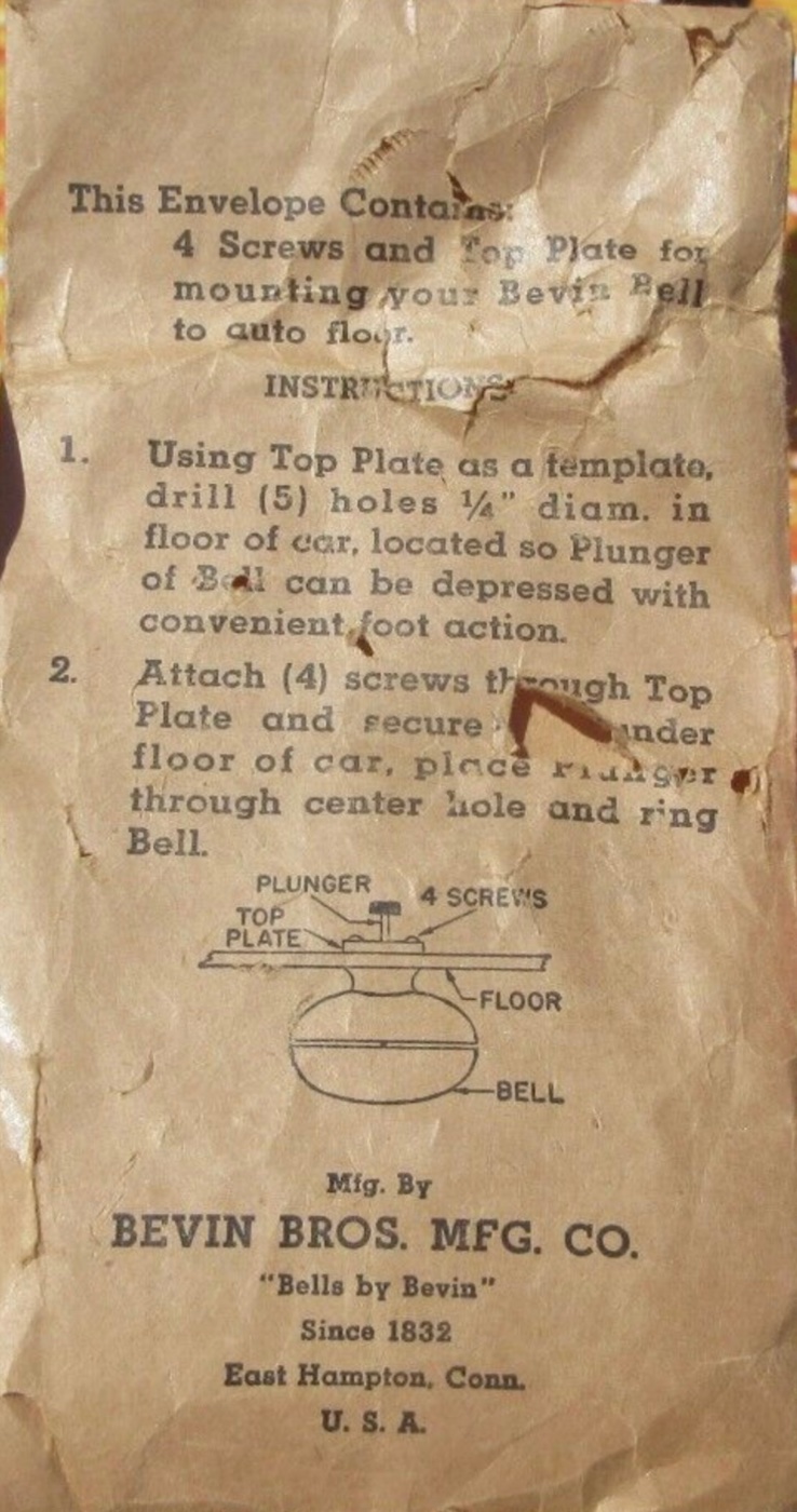 Here is a rare find, an original 1920s (NOS New Old Stock)Bevin Carriage Foot Bell. This original bell is made from large 5.5 heavy brass with nickel plate. It has not been installed and only shows very minor shelf wear. It has beautiful nickel plating with a minor scuff here or there. It has a very loud and crisp “Ding Dong” that holds it tone when the foot plunger is depressed. This is an original T era bell, not a cheap reproduction. Impossible to find in this condition . I put a copy of online original directions in photos for reference. 350.00 includes shipping.
