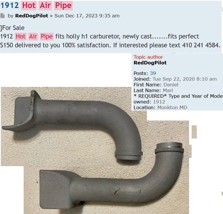 Re: Wanted: 1915/1916 Gas Cap & Carb Pipe