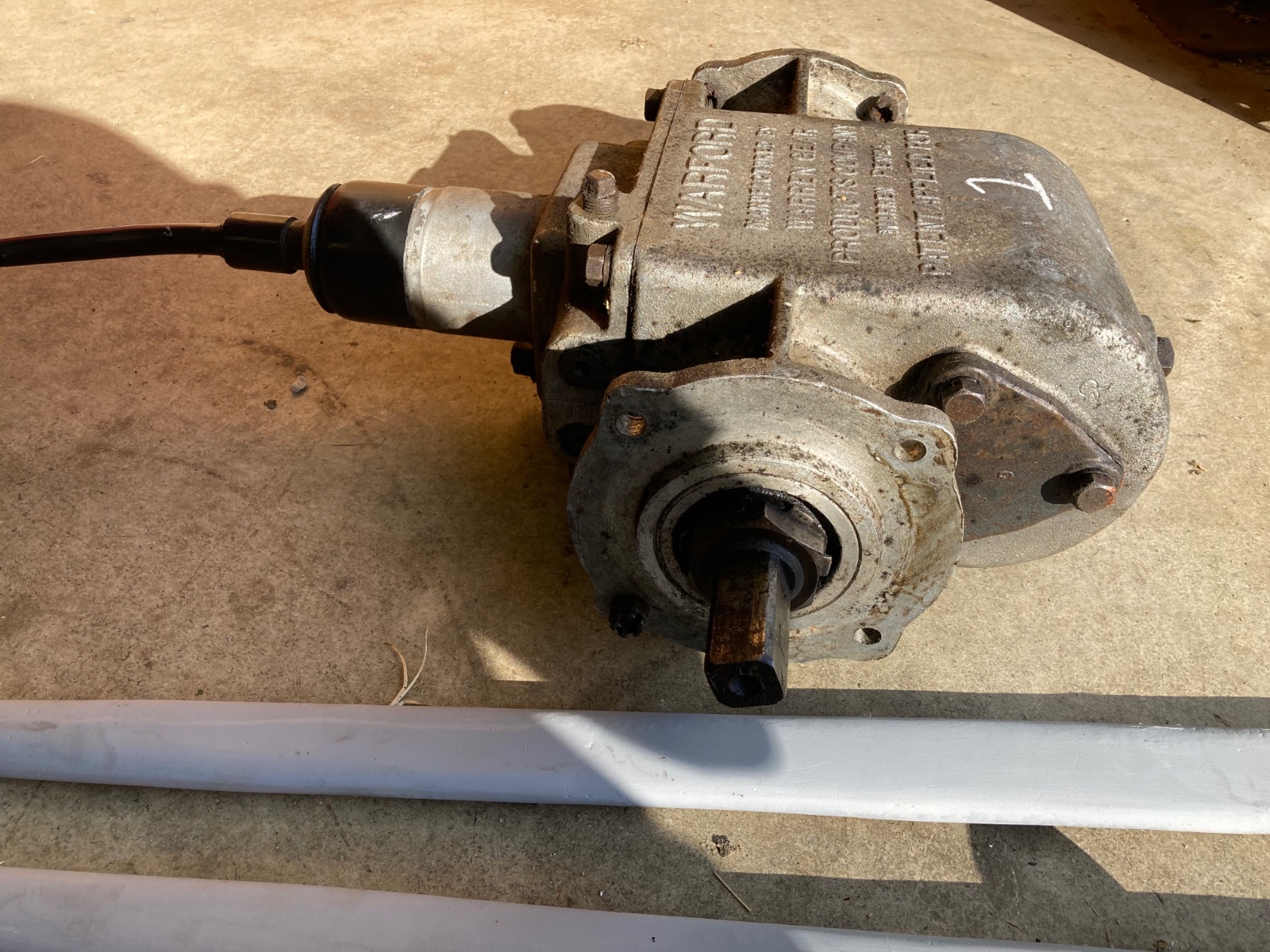 Warford group #3: one empty aluminum case warford transmission, there is some damage, it’ll need repaired. Also included is a very nice bare shift tower. $200 as is