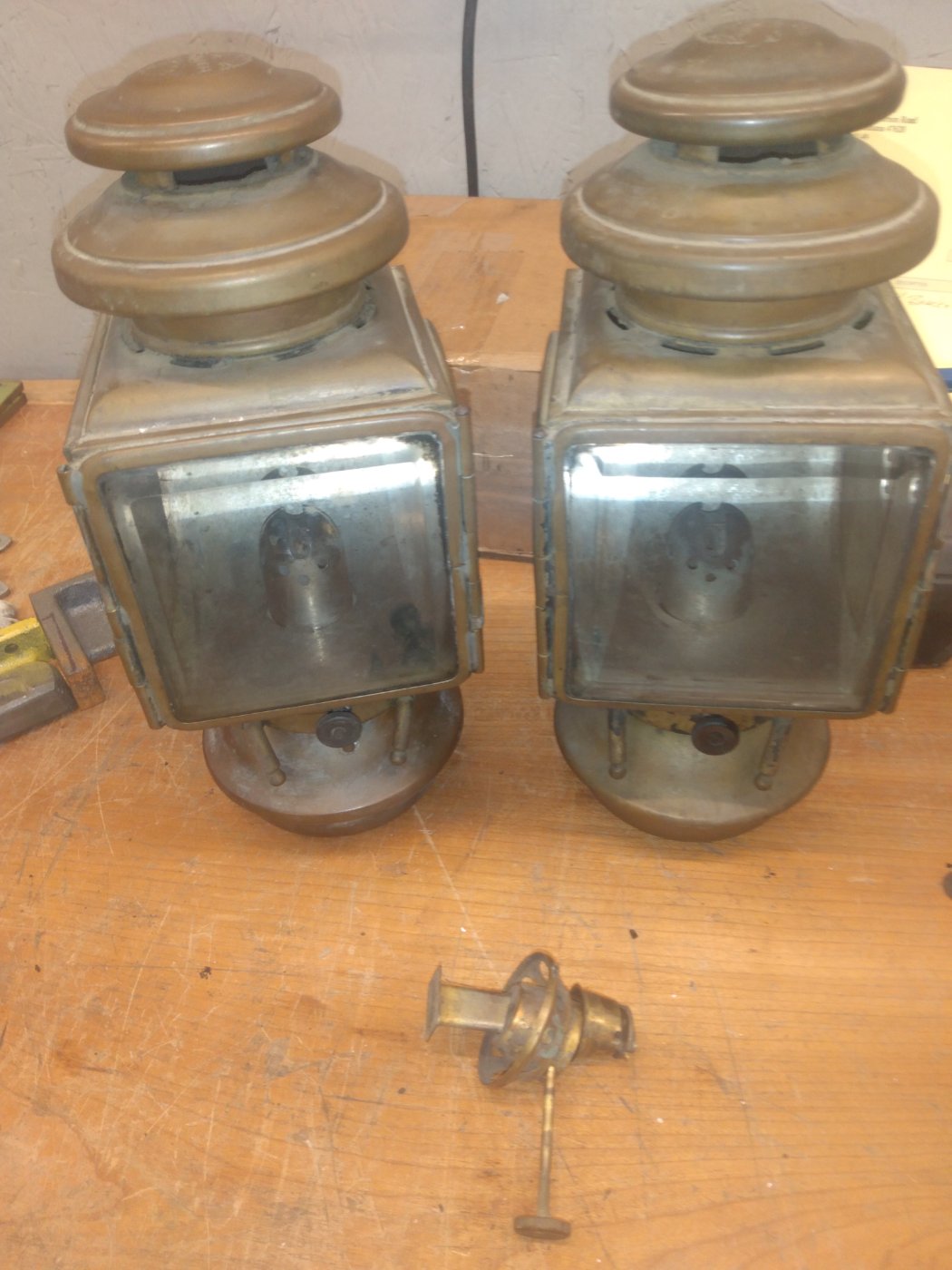 Brass e&j 1908 sidelights and taillight fs. Sold
